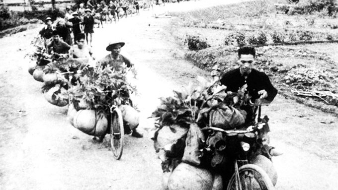 21.000 xe đạp thồ, hơn 261.000 dân công cùng các loại tàu, thuyền, lừa, ngựa… ngày đêm vận chuyển lương thực, vũ khí, đạn dược lên mặt trận Điện Biên Phủ. Ảnh tư liệu
