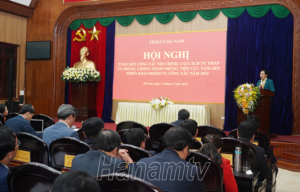 Phát biểu chỉ đạo hội nghị, đồng chí Nguyễn Thái Học, Phó trưởng Ban Nội chính Trung ương ghi nhận và đánh giá cao những kết quả trong công tác nội chính năm 2022 của tỉnh Hà Nam. Về nhiệm vụ năm 2023, đồng chí Phó Trưởng Ban Nội chính Trung ương đề nghị Ban Nội chính Tỉnh ủy Hà Nam cần tiếp tục nâng cao hiệu quả công tác nghiên cứu, tham mưu đề xuất các chủ trương, định hướng của cấp ủy tỉnh về công tác nội chính, CCTP, PCTN, tiêu cực; kịp thời phát hiện, tham mưu chỉ đạo ngăn chặn, xử lý, đấu tranh kịp thời, dứt điểm, không để bị động, bất ngờ; phát sinh điểm nóng; tăng cường công tác kiểm tra, giám sát việc thực hiện các chủ trương, nghị quyết, chính sách, pháp luật của Đảng và Nhà nước về công tác nội chính, CCTP, PCTN, tiêu cực; đặc biệt cần nâng cao hiệu quả hoạt động của BCĐ PCTN, tiêu cực các cấp.