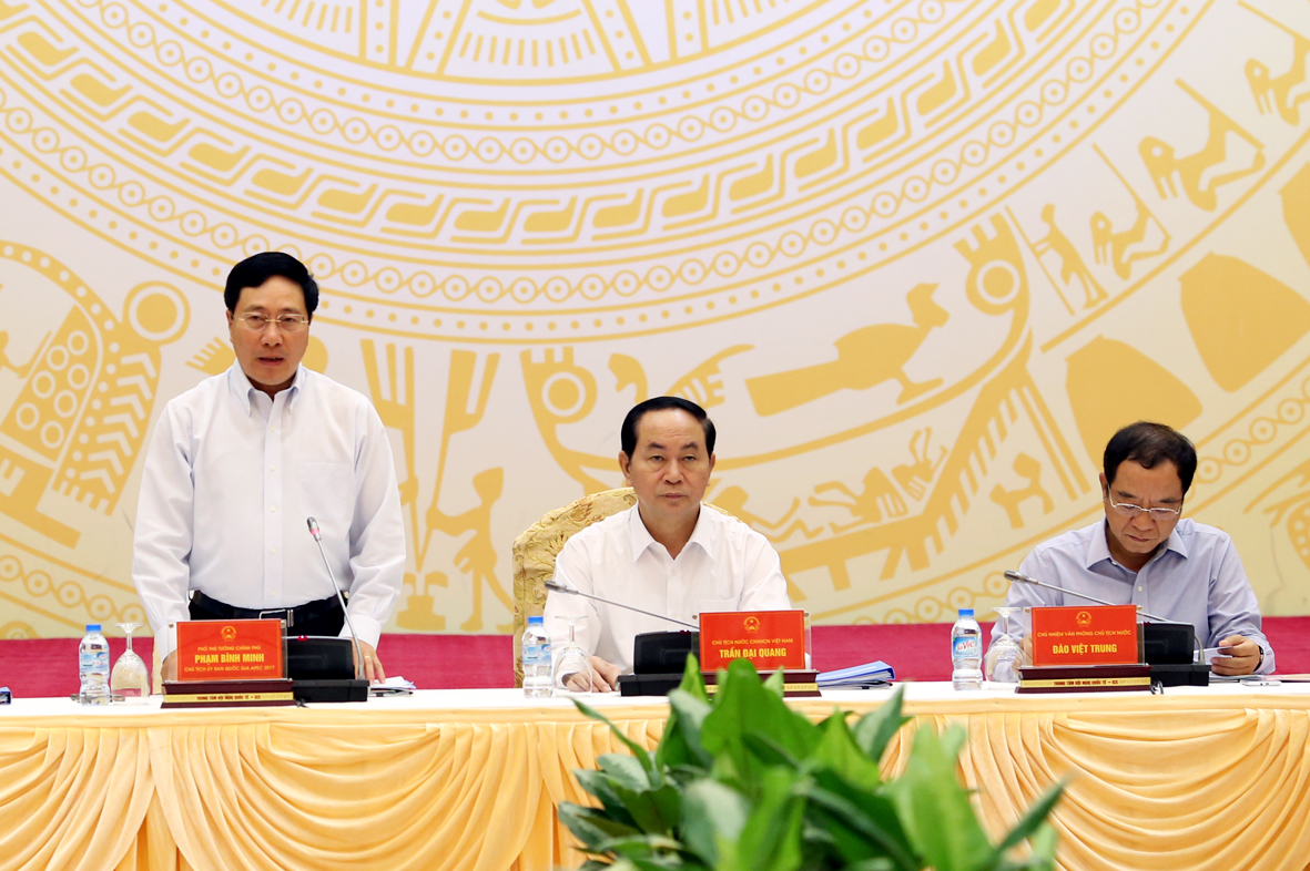 Phát biểu mở đầu Phiên họp, Phó Thủ tướng Chính phủ Phạm Bình Minh bày tỏ cảm ơn Chủ tịch nước Trần Đại Quang đã quan tâm, chỉ đạo sát sao công tác chuẩn bị và tổ chức Năm APEC 2017. Đặc biệt, vừa qua Chủ tịch nước đã trực tiếp kiểm tra, thị sát tiến độ triển khai công tác chuẩn bị tại thành phố Đà Nẵng và đã tham dự, phát biểu định hướng Đối thoại về tương lai APEC, được tổ chức trong dịp Hội nghị lần thứ hai các quan chức cao cấp APEC tại Hà Nội.