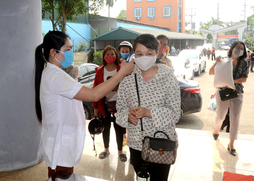Người dân đến nhận gạo đều được kiểm tra thân nhiệt, rửa tay sát khuẩn