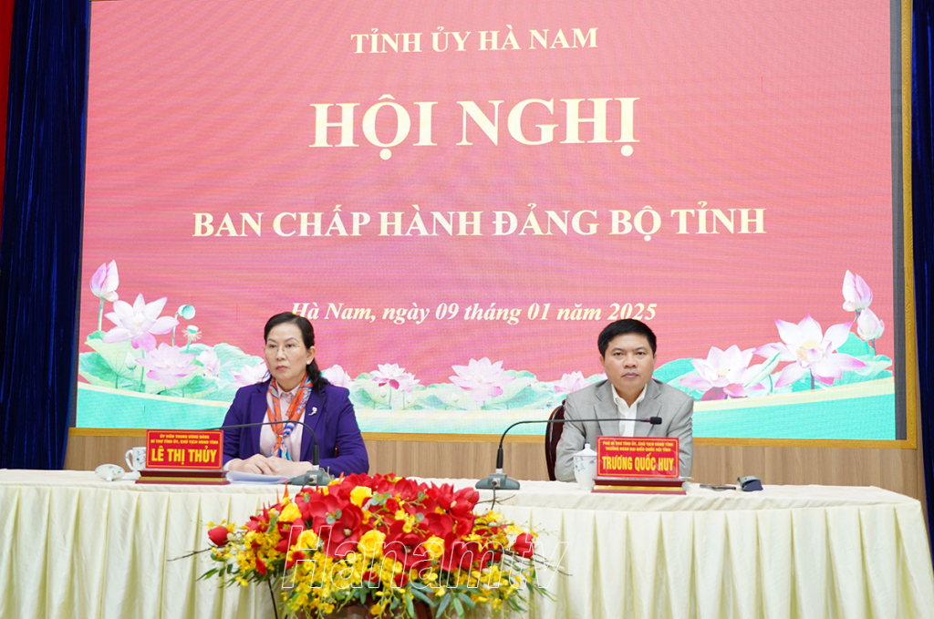 Sáng 9/1, Ban Chấp hành (BCH) Đảng bộ tỉnh tổ chức hội nghị cho ý kiến, cho chủ trương các nội dung theo thẩm quyền. Đồng chí Lê Thị Thủy, Ủy viên Trung ương Đảng, Bí thư Tỉnh ủy, Chủ tịch HĐND tỉnh; Trương Quốc Huy, Phó Bí thư Tỉnh ủy, Chủ tịch UBND tỉnh, Trưởng Đoàn đại biểu Quốc hội tỉnh Hà Nam chủ trì hội nghị.