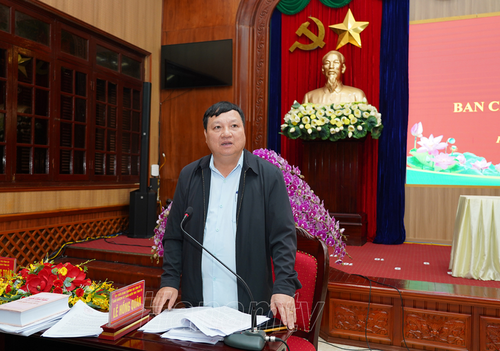 Đồng chí Lê Thị Thủy, Ủy viên Trung ương Đảng, Bí thư Tỉnh ủy, Chủ tịch HĐND tỉnh phát biểu tại hội nghị.