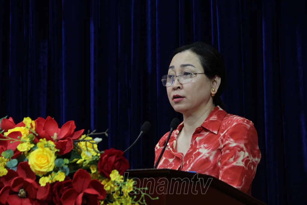Đồng chí Đinh Thị Lụa, Phó Bí thư Thường trực Tỉnh ủy phát biểu tại hội nghị.