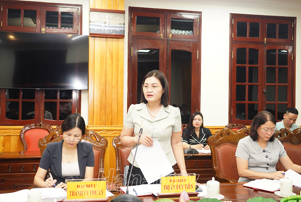 Lãnh đạo Thị ủy Duy Tiên phát biểu tại hội nghị.