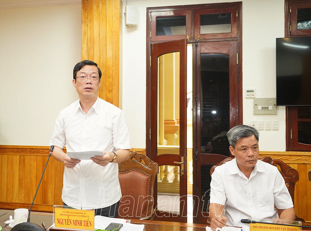 Đồng chí Nguyễn Minh Tiến, Ủy viên BTV Tỉnh ủy, Trưởng Ban Dân vận Tỉnh ủy phát biểu tại hội nghị.
