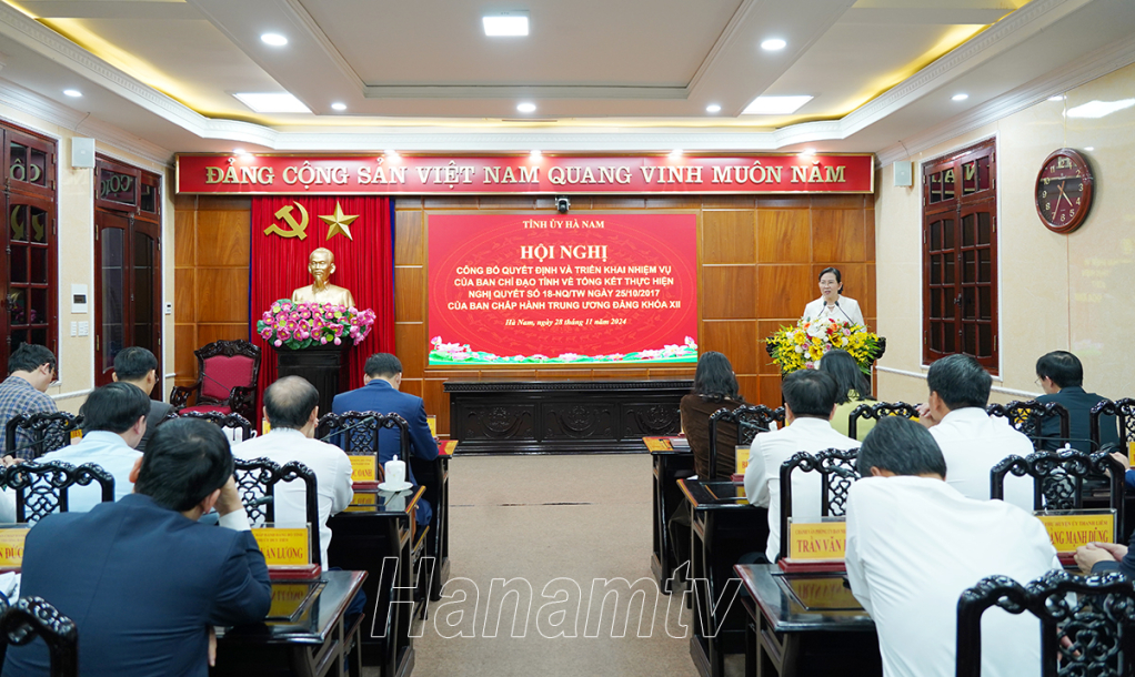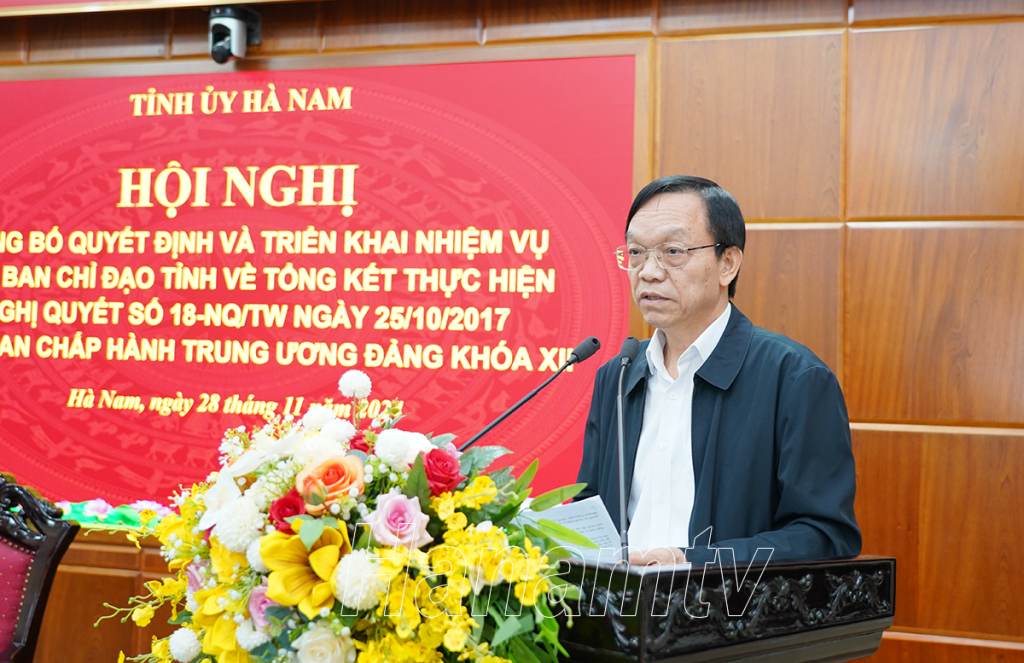 Chiều 28/11, Tỉnh ủy Hà Nam tổ chức công bố quyết định và triển khai nhiệm vụ của Ban Chỉ đạo (BCĐ) tỉnh về tổng kết thực hiện Nghị quyết số 18-NQ/TW của Ban Chấp hành Trung ương Đảng khóa XII “Một số vấn đề về tiếp tục đổi mới, sắp xếp tổ chức bộ máy của hệ thống chính trị tinh gọn, hoạt động hiệu lực, hiệu quả”.