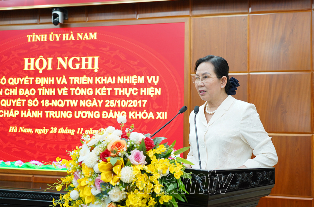 Phát biểu chỉ đạo hội nghị, đồng chí Lê Thị Thủy, Ủy viên Trung ương Đảng, Bí thư Tỉnh ủy, Chủ tịch HĐND tỉnh, Trưởng BCĐ tỉnh về tổng kết thực hiện Nghị quyết số 18-NQ/TW của Ban Chấp hành Trung ương Đảng khóa XII nhấn mạnh: Đây là nhiệm vụ đặc biệt quan trọng, là cuộc cách mạng tinh gọn tổ chức bộ máy của hệ thống chính trị, cần thống nhất cao về nhận thức và hành động trong toàn Đảng, toàn hệ thống chính trị, tạo sự đồng thuận, thống nhất trong thực hiện. Đồng chí Bí thư Tỉnh ủy, Trưởng BCĐ tỉnh yêu cầu, các cấp ủy, tổ chức đảng, cơ quan, đơn vị, các cấp, các ngành, trước hết là cán bộ lãnh đạo, người đứng đầu cần gương mẫu, chủ động, quyết liệt trong thực hiện nhiệm vụ được giao theo tinh thần chỉ đạo của Trung ương “vừa chạy vừa xếp hàng”, khẩn trương hoàn thành việc tổng kết Nghị quyết số 18-NQ/TW và báo cáo Ban Chấp hành Trung ương về phương án sắp xếp, kiện toàn tổ chức bộ máy, hệ thống chính trị tỉnh.