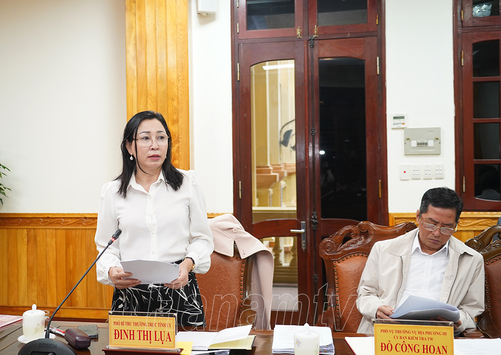 Đồng chí Đinh Thị Lụa, Phó Bí thư Thường trực Tỉnh ủy Dự thảo Báo cáo kết quả công tác năm 2023, phương hướng, mục tiêu, nhiệm vụ trọng tâm năm 2024 của Tỉnh ủy.