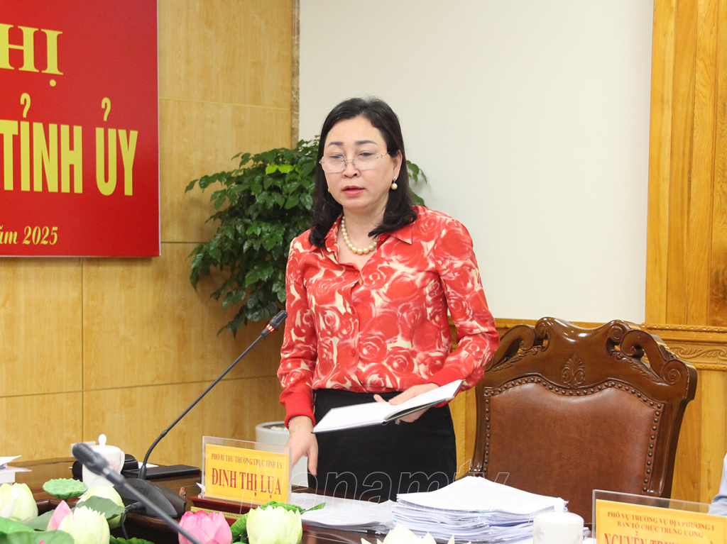 Đồng chí Đinh Thị Lụa, Phó Bí thư Thường trực Tỉnh ủy phát biểu tại hội nghị.