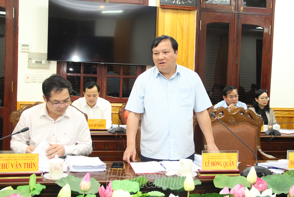 Đồng chí Lê Hồng Quân, Ủy viên BTV Tỉnh ủy, Chủ nhiệm Ủy ban Kiểm tra Tỉnh ủy phát biểu tại hội nghị.