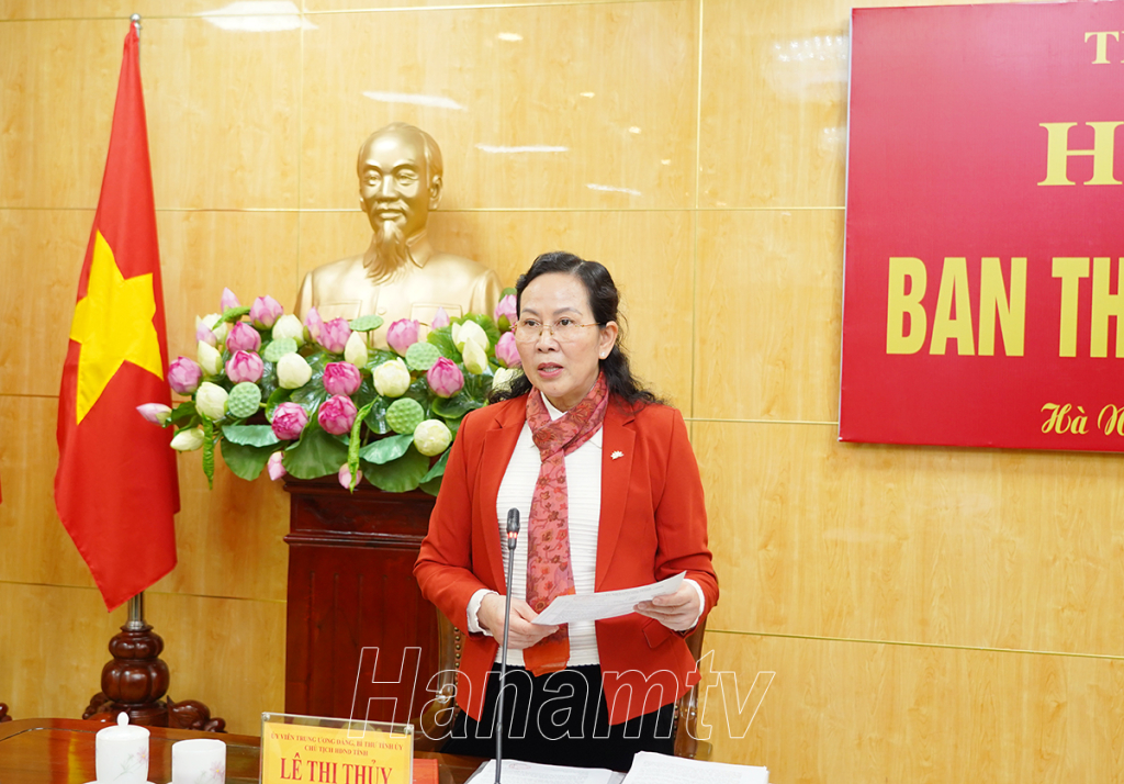 Đồng chí Lê Thị Thủy, Ủy viên Trung ương Đảng, Bí thư Tỉnh ủy, Chủ tịch HĐND tỉnh phát biểu kết luận hội nghị.