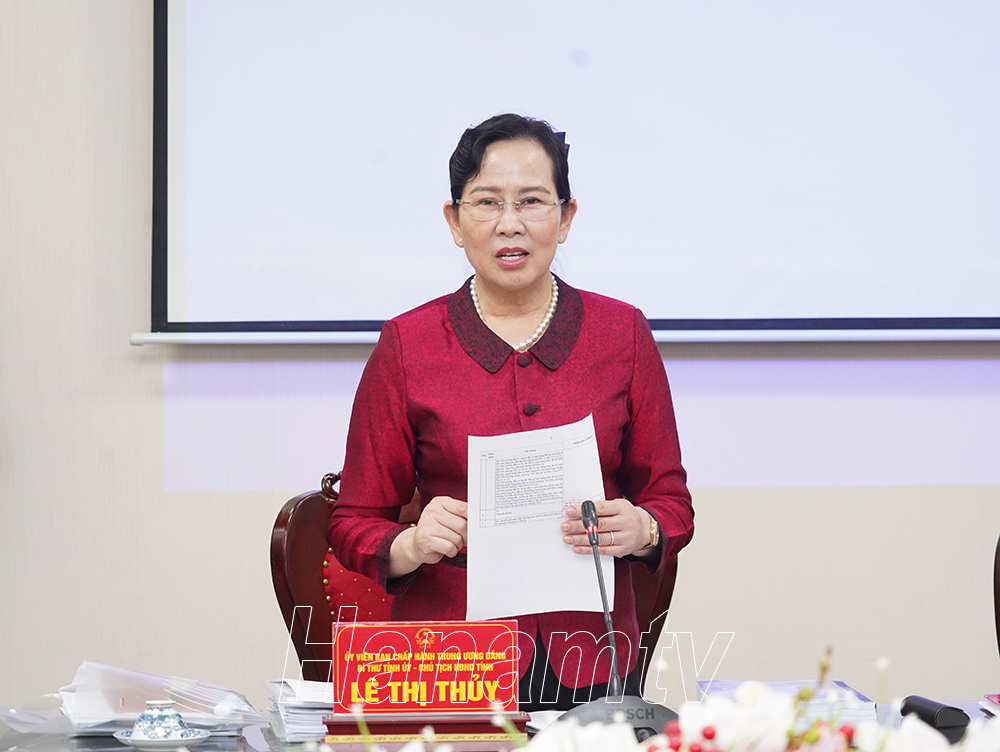 Đồng chí Lê Thị Thuỷ, Ủy viên Trung ương Đảng, Bí thư Tỉnh ủy, Chủ tịch HĐND tỉnh chủ trì hội nghị