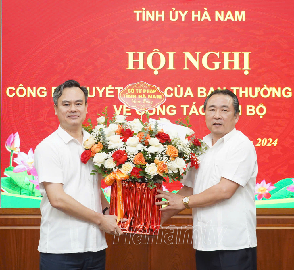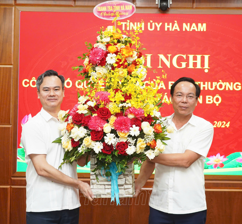 Đồng chí Trần Nguyễn Hiền Anh, Trưởng ban Nội chính Tỉnh ủy, Chánh văn phòng Tỉnh ủy phát biểu nhận nhiệm vụLãnh đạo Văn phòng Tỉnh ủy tặng hoa chúc mừng đồng chí Trần Nguyễn Hiền Anh.