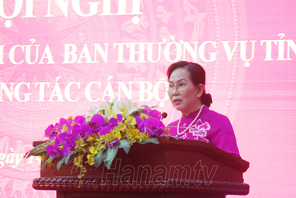 Đồng chí Lê Thị Thủy, Ủy viên Trung ương Đảng, Bí thư Tỉnh ủy, Chủ tịch HĐND tỉnh phát biểu giao nhiệm vụ cho đồng chí Lê Văn Hà.