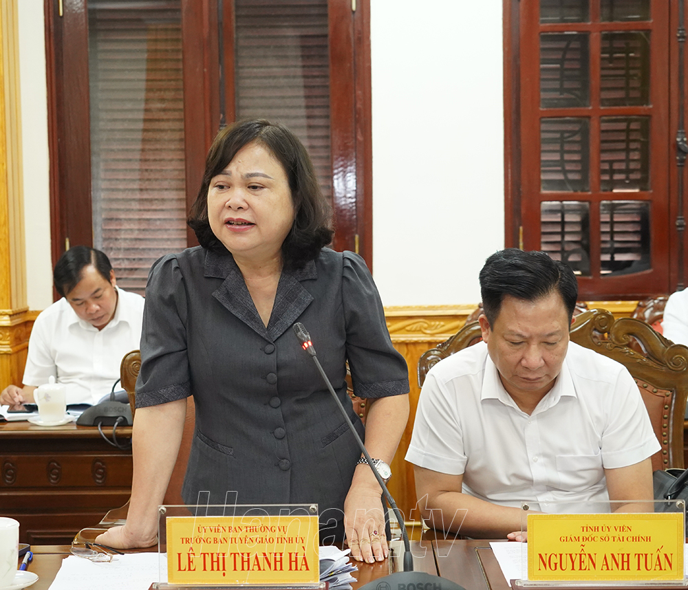 Đồng chí Lê Thị Thanh Hà, Ủy viên BTV Tỉnh ủy, Trưởng Ban Tuyên giáo Tỉnh ủy phát biểu tại hội nghị.
