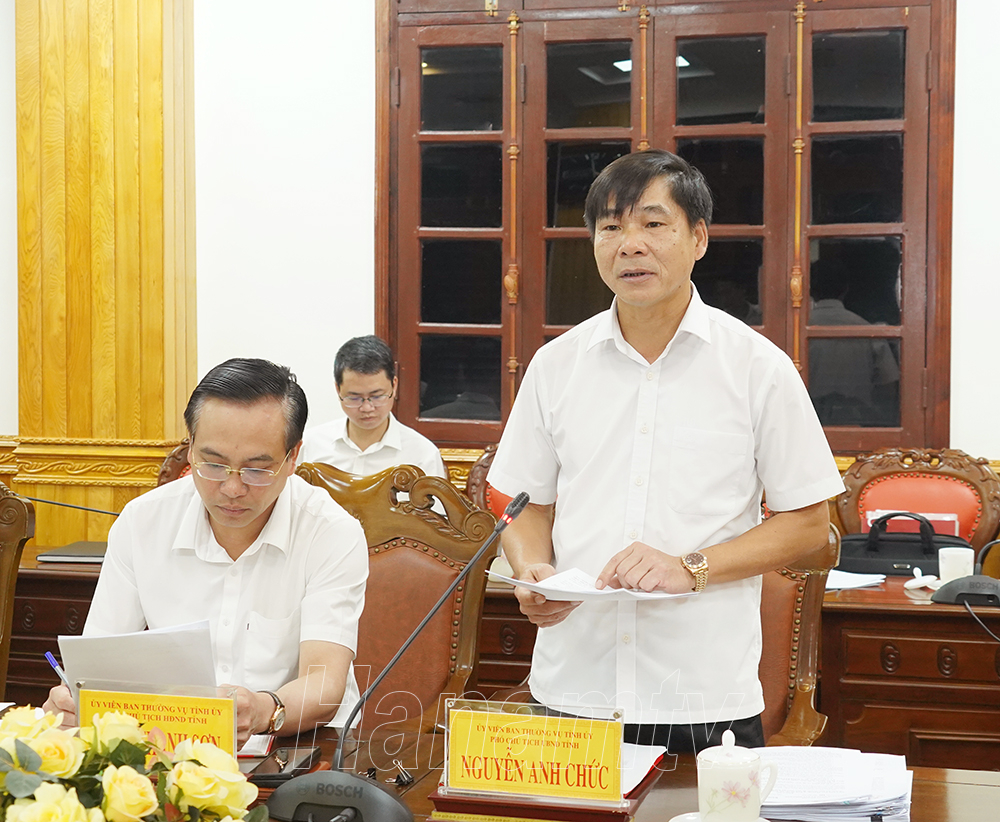 Đồng chí Nguyễn Anh Chức, Ủy viên BTV Tỉnh ủy, Phó Chủ tịch Thường trực UBND tỉnh báo cáo các nội dung xin ý kiến của BTV.