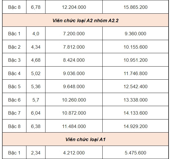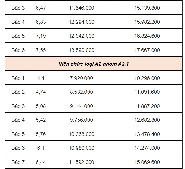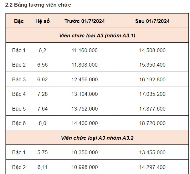 Bảng lương công chức, viên chức khi lương cơ sở tăng lên 2,34 triệu đồng