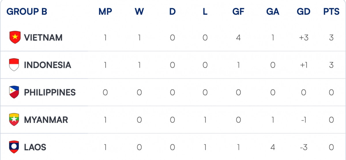 Bảng xếp hạng ASEAN Cup 2024 mới nhất: ĐT Việt Nam giữ lợi thế
