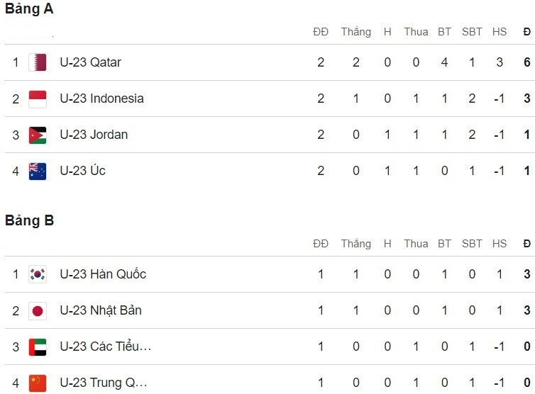 Bảng xếp hạng U23 châu Á 2024 mới nhất: U23 Indonesia có lợi thế