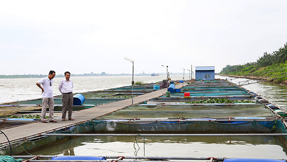 Bảo vệ lồng bè nuôi cá trên sông Hồng trong mùa mưa, bão