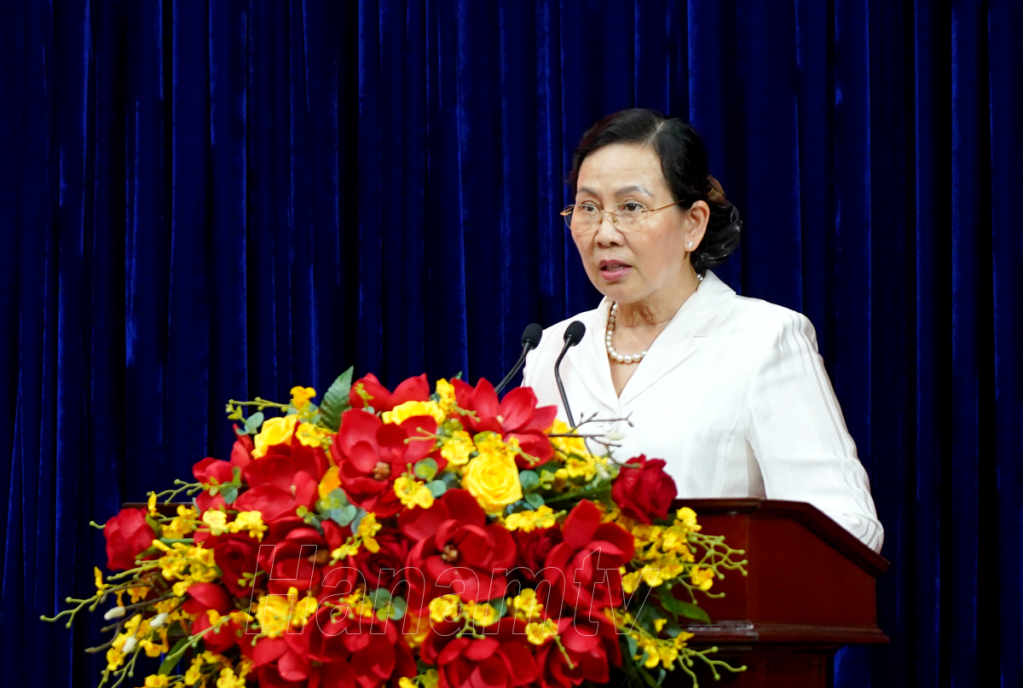 Đồng chí Bí thư Tỉnh ủy Lê Thị Thủy phát biểu khai mạc hội nghị.