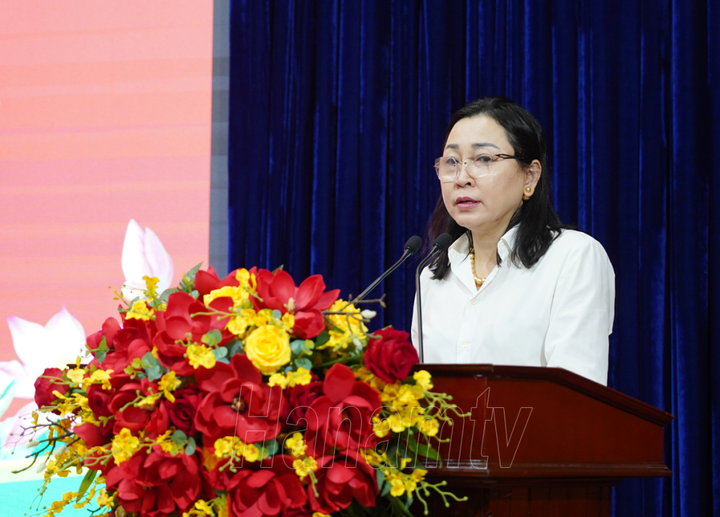 Đồng chí Phó Bí thư Thường trực Tỉnh ủy Đinh Thị Lụa phát biểu tại hội nghị.