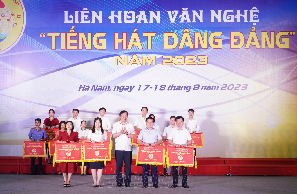 Đồng chí Đặng Thanh Sơn, Ủy viên BTV Tỉnh ủy, Phó Chủ tịch Thường trực HĐND tỉnh trao giải Nhất cho tiết mục xuất sắc nhất liên hoanĐồng chí Đặng Anh Tuấn, Tỉnh ủy viên, Bí thư Đảng bộ Khối các cơ quan tỉnh trao giải Nhì cho các tiết mục dự thi tiêu biểuBan tổ chức trao giải ba và giải khuyến khích cho các tiết mục tiêu biểu tại liên hoan