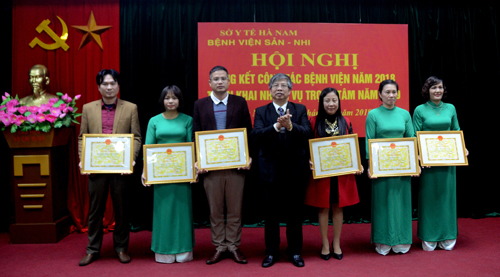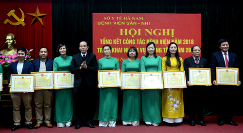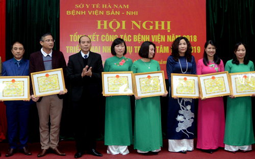 Lãnh đạo Sở Y tế trao bằng khen cho các tập thể, cá nhân của bệnh viên Sản - Nhi Hà Nam vì đã có thành tích xuất sắc trong công tác năm 2018