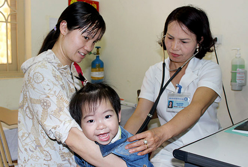 Bác sỹ khám cho bệnh nhi tại BV Sản-Nhi Hà Nam (Ảnh: ĐH)