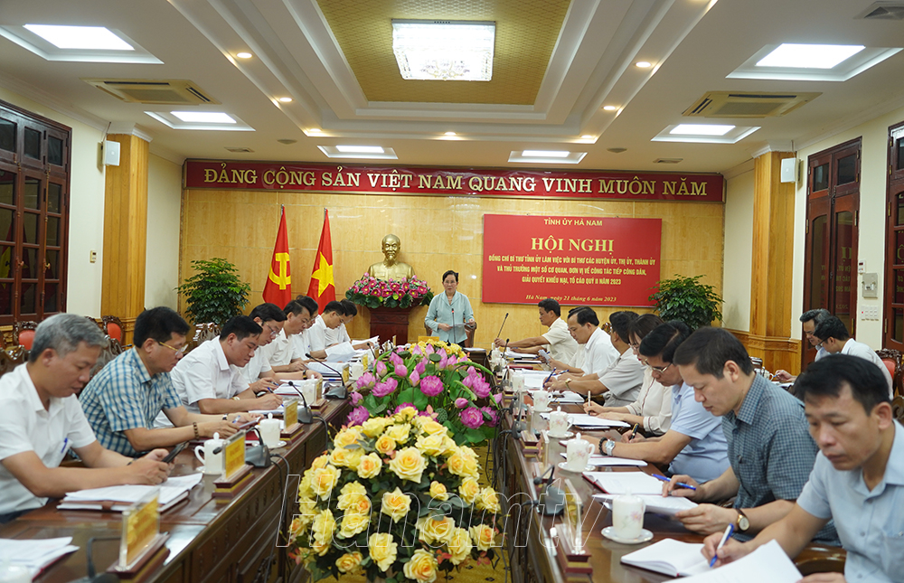 Sáng 21/6, đồng chí Lê Thị Thủy, Ủy viên TW Đảng, Bí thư Tỉnh ủy, Chủ tịch HĐND tỉnh làm việc với Bí thư các Huyện ủy, Thị ủy, Thành ủy và Thủ trưởng một số cơ quan liên quan về tình hình, kết quả công tác tiếp công dân, giải quyết đơn thư khiếu nại, tố cáo (KNTC) và kiến nghị, phản ánh của công dân trên địa bàn tỉnh Quý II năm 2023.