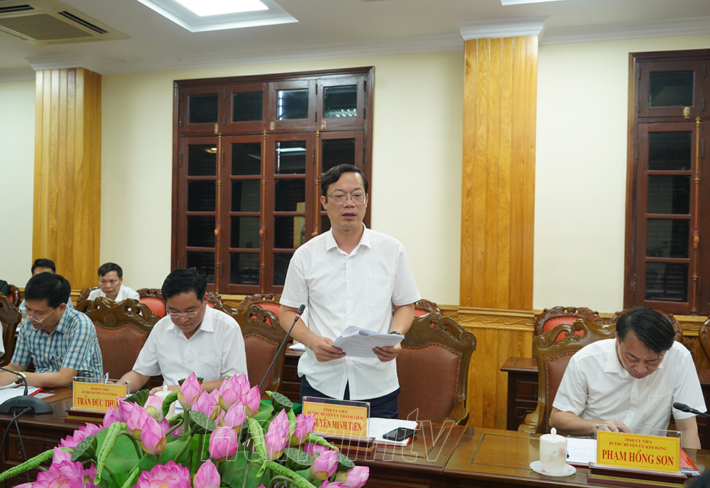 Đồng chí Nguyễn Minh Tiến, Tỉnh ủy viên, Bí thư Huyện ủy Thanh Liêm phát biểu tại hội nghị.