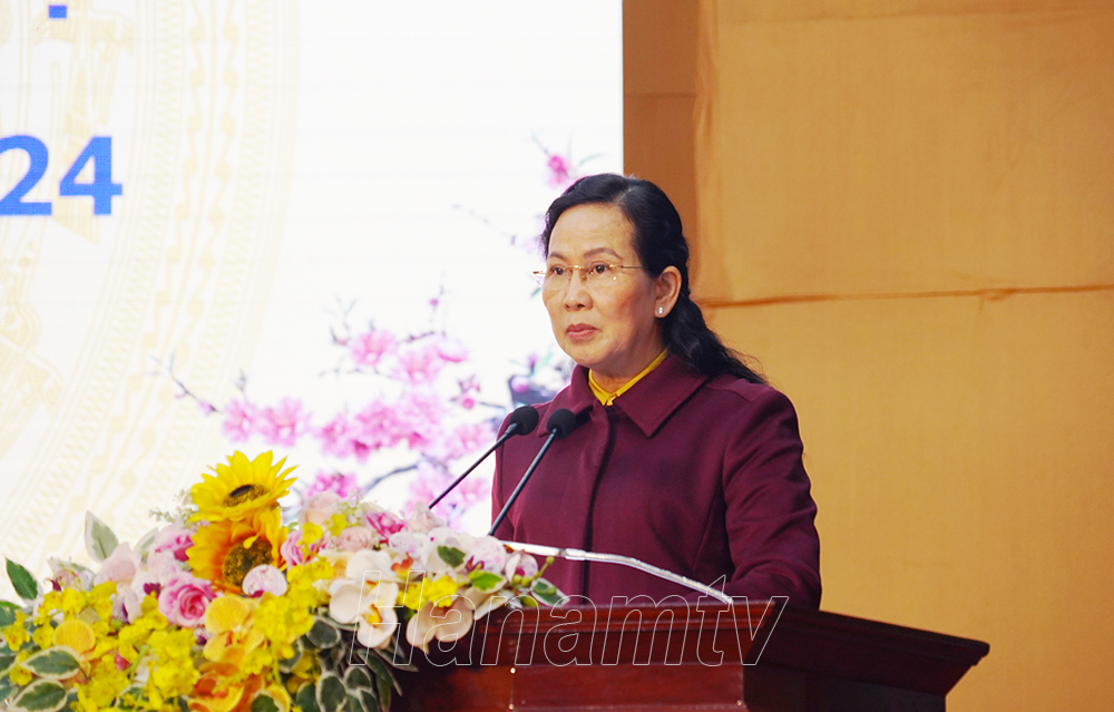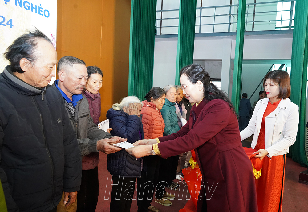 Tại chương trình, thay mặt Tỉnh ủy, HĐND, UBND, Ủy ban MTTQ tỉnh, đồng chí Bí thư Tỉnh ủy Lê Thị Thủy đã trao biểu trưng số tiền 254 triệu đồng là kinh phí tặng quà Tết cho các hộ nghèo trên địa bàn Thị xã Duy Tiên trong dịp Tết Nguyên đán Giáp Thìn 2024 cho lãnh đạo Thị xã.