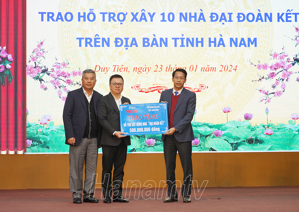 Tại chương trình, đồng chí Lê Quốc Minh, Ủy viên Trung ương Đảng, Tổng Biên tập Báo Nhân dân, Phó trưởng Ban Tuyên giáo Trung ương, Chủ tịch Hội Nhà Báo Việt Nam và lãnh đạo Tập đoàn Dầu khí Việt Nam đã trao tặng biểu trưng kinh phí xây dựng 10 căn nhà Đại đoàn kết cho 10 hộ nghèo trên địa bàn tỉnh cho lãnh đạo Ủy ban MTTQ tỉnh Hà Nam (trong đó, Thị xã Duy Tiên 02 căn nhà, huyện Kim Bảng 06 căn nhà, thành phố Phủ Lý 01 căn nhà, huyện Bình Lục 01 căn nhà, số tiền 50 triệu đồng/căn nhà với tổng trị giá 500 triệu đồng); tặng 40 suất quà tết cho hộ nghèo dự chương trình. Đây là sự động viên, sẻ chia để người nghèo, hộ nghèo có được ngôi nhà vững chắc đón tết đầm ấm, có thêm động lực và tinh thần, sớm có cuộc sống ổn định hơn.