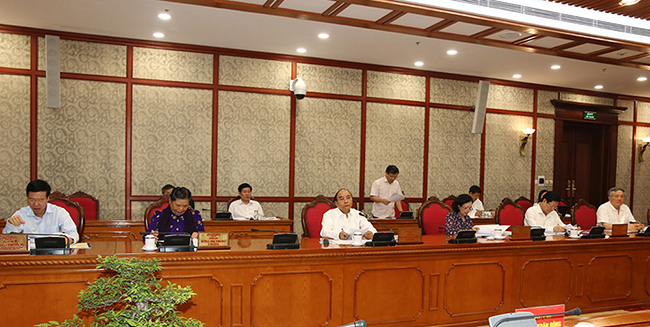 Thủ tướng Chính phủ Nguyễn Xuân Phúc chủ trì hội nghị Bộ Chính trị làm việc với BTV Tỉnh ủy Hà Nam về công tác chuẩn bị Đại hội Đảng bộ tỉnh lần thứ XX Cùng dự hội nghị có các đồng chí: Tòng Thị Phóng - Ủy viên Bộ Chính trị, Phó Chủ tịch Quốc hội; Trương Thị Mai - Ủy viên Bộ Chính trị, Bí thư Trung ương Đảng, Trưởng Ban Dân vận Trung ương; Võ Văn Thưởng - Ủy viên Bộ Chính trị, Bí thư Trung ương Đảng, Trưởng Ban Tuyên giáo Trung ương; Ngô Xuân Lịch - Ủy viên Bộ Chính trị, Phó Bí thư Quân ủy Trung ương, Đại tướng, Bộ trưởng Bộ Quốc phòng; Nguyễn Hòa Bình - Bí thư Trung ương Đảng, Chánh án Tòa án Nhân dân Tối cao; Phan Đình Trạc - Bí thư Trung ương Đảng, Trưởng Ban Nội chính Trung ương; Nguyễn Xuân Thắng - Bí thư Trung ương Đảng, Giám đốc Học viện Chính trị quốc gia Hồ Chí Minh; đại diện lãnh đạo các Ban xây dựng Đảng, Văn phòng Trung ương Đảng.