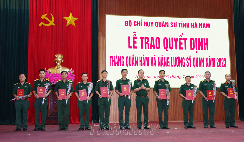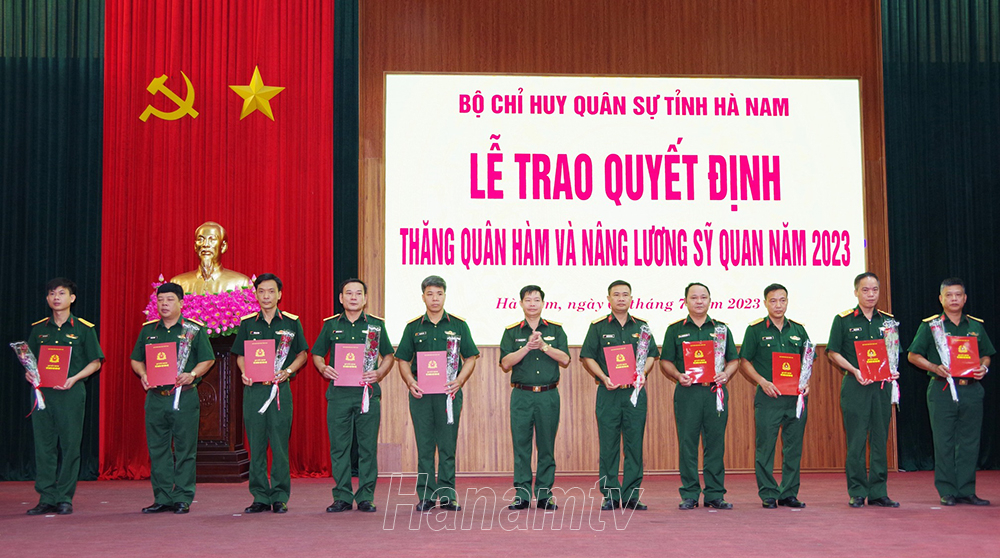 Bộ CHQS tỉnh công bố, trao các quyết định thăng quân hàm và nâng lương sĩ quan năm 2023