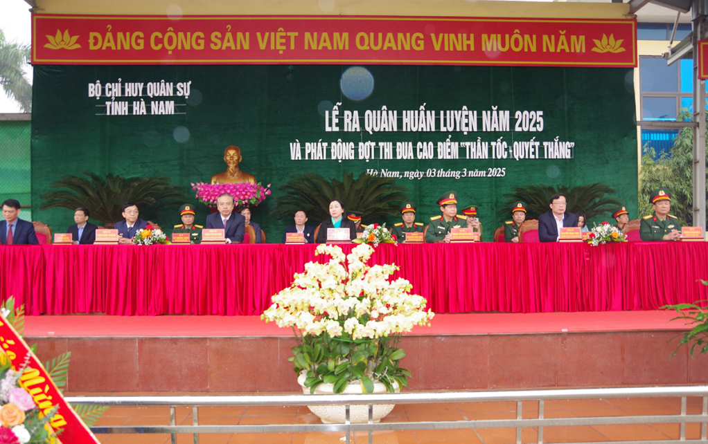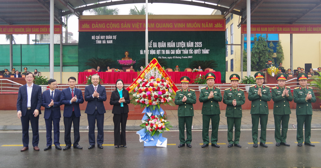 Sáng 3/3, Bộ CHQS tỉnh Hà Nam tổ chức Lễ ra quân huấn luyện năm 2025 và phát động đợt thi cao điểm “Thần tốc - Quyết thắng”. Dự lễ ra quân huấn luyện có đồng chí Đinh Thị Lụa, Phó Bí thư Thường trực Tỉnh ủy; các đồng chí Ủy viên Ban Thường vụ Tỉnh ủy; Ủy viên Ban Chấp hành Đảng bộ tỉnh; lãnh đạo các cơ quan chức năng của Quân khu 3, đại diện các sở, ban, ngành, huyện, thị xã, thành phố.