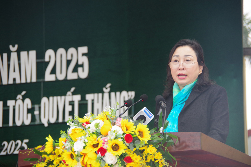 Phát biểu động viên cán bộ chiến sỹ LLVT tỉnh, đồng chí Phó Bí thư Thường trực Tỉnh ủy Đinh Thị Lụa biểu dương những thành tích của LLVT tỉnh đạt được thời gian qua. Đồng chí nhấn mạnh: Năm 2025, toàn Đảng, toàn dân, toàn quân đang ra sức thi đua lập thành tích chào mừng Kỷ niệm 50 năm Ngày giải phóng miền Nam, thống nhất đất nước, 80 năm Quốc khánh nước Cộng hòa xã hội chủ nghĩa Việt Nam, là năm tổ chức đại hội đảng bộ các cấp tiến tới Đại hội Đảng lần thứ XIV, đề nghị các cấp ủy, chính quyền, đoàn thể, địa phương và LLVT tỉnh tập trung lãnh đạo, chỉ đạo quán triệt, tổ chức thực hiện nghiêm túc, hiệu quả các nghị quyết, chỉ thị, mệnh lệnh của cấp trên và của Tỉnh ủy, UBND tỉnh về công tác QP, QS địa phương.
