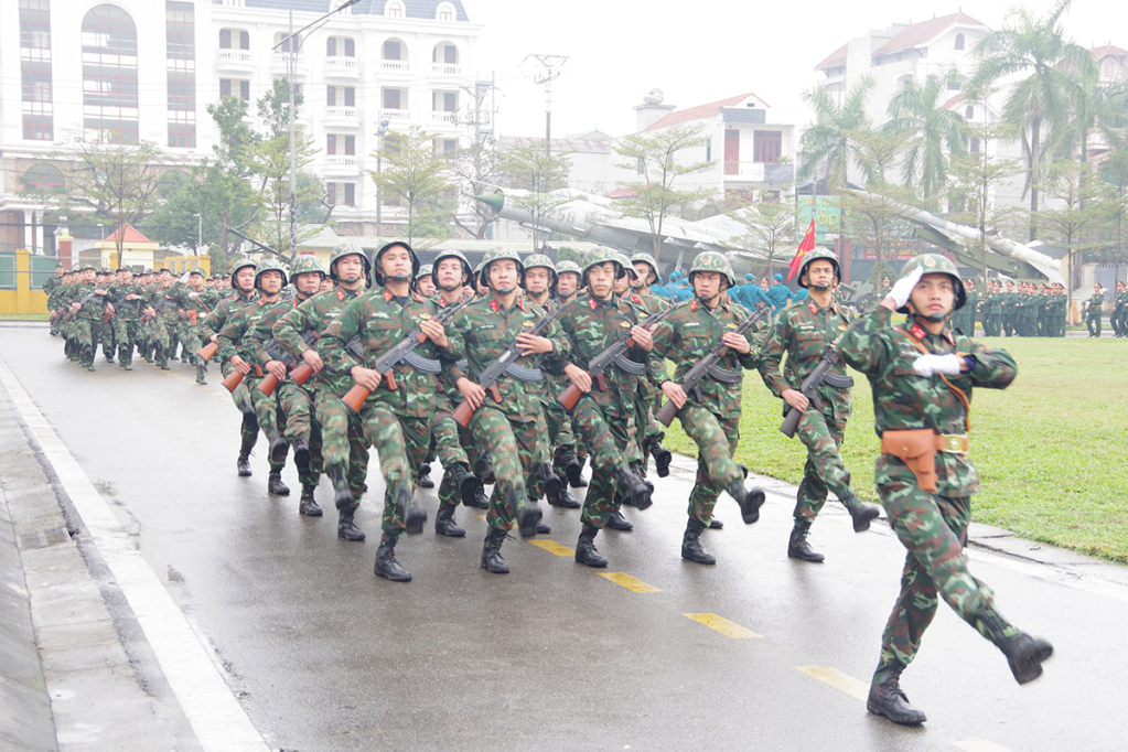 Các lực lượng tham gia huấn luyện thực hành duyệt đội ngũ.