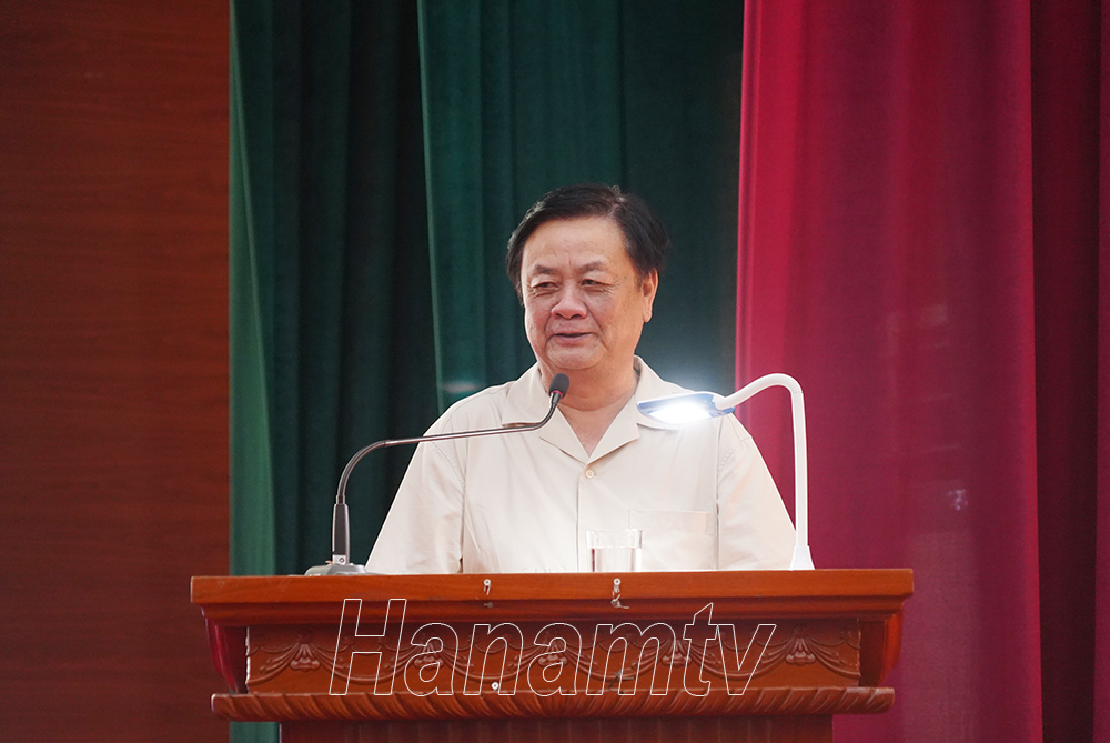Trao đổi, chia sẻ một số nội dung từ thực tiễn lãnh đạo, chỉ đạo phát triển kinh tế nông nghiệp và xây dựng NTM, Bộ trưởng Bộ NN&PTNT khẳng định tầm quan trọng của công tác truyền thông, nâng tầm sản phẩm OCOP và các sản phẩm nông sản thế mạnh của địa phương để từng bước nâng cao thu nhập cho người dân; quan tâm đầu tư, cải tạo cảnh quan môi trường gắn với phát triển du lịch sinh thái, làng nghề; chú trọng vấn đề bảo tồn, phát triển giá trị văn hóa trong xây dựng NTM… Bộ trưởng Bộ NN&PTNT mong muốn, thời gian tới, huyện Bình Lục tiếp tục phát huy những kết quả đạt được, tích cực học tập, sáng tạo dựa trên điều kiện thực tế của địa phương trong thực hiện các nhiệm vụ xây dựng NTM.