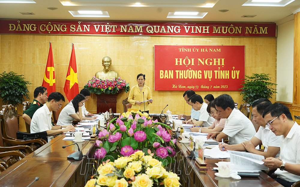 Tại hội nghị, đồng chí Chủ tịch UBND tỉnh Trương Quốc Huy thay mặt Ban cán sự Đảng UBND tỉnh báo cáo các nội dung KT-XH xin ý kiến, chủ trương của BTV Tỉnh ủy về: Chuyển đổi Giấy đăng ký lập Văn phòng Dự án thành Giấy đăng ký Hoạt động tại Việt Nam với thời hạn 03 năm để triển khai các chương trình/dự án trong lĩnh vực nông nghiệp, phát triển nông thôn giai đoạn 2023 - 2026 của tổ chức Rikolto International (Bỉ); Bổ sung kinh phí cho Bộ Chỉ huy quân sự tỉnh thực hiện công tác chuẩn bị và thực hành diễn tập khu vực phòng thủ tỉnh năm 2023; Bổ sung Kế hoạch các đoàn công tác của tỉnh năm 2023; Về việc điều chỉnh chủ trương đầu tư đồng thời chấp thuận nhà đầu tư xây dựng Khu chế biến sâu các sản phẩm sau khai thác thuộc Dự án khai thác lộ thiên mỏ đá vôi làm vật liệu xây dựng thông thường tại xã Thanh Sơn, huyện Kim Bảng; Về việc điều chỉnh Kế hoạch phát triển nhà ở năm 2023; việc ban hành Chỉ thị của BTV Tỉnh ủy về tăng cường sự lãnh đạo của Đảng, tập trung triển khai thực hiện Nghị quyết số 30-NQ/TW ngày 23/11/2022 của Bộ Chính trị về phát triển kinh tế - xã hội và bảo đảm quốc phòng, an ninh vùng đồng bằng Sông Hồng đến năm 2030, tầm nhìn đến năm 2045; thành lập Ban Chỉ đạo thực hiện Nghị quyết số 30-NQ/TW ngày 23/11/2022 của Bộ Chính trị về phát triển kinh tế - xã hội và bảo đảm quốc phòng, an ninh vùng đồng bằng Sông Hồng đến năm 2030, tầm nhìn đến năm 2045.