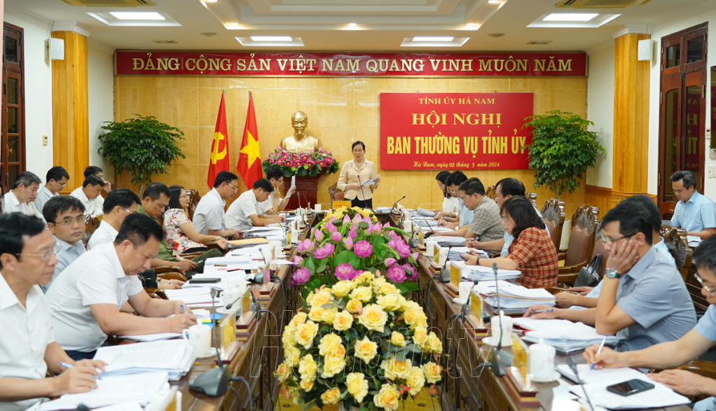 Tiếp đó, đại diện Ban Cán sự Đảng UBND tỉnh báo cáo các nội dung xin ý kiến, xin chủ trương của BTV Tỉnh ủy theo thẩm quyền để trình tại Kỳ họp chuyên đề HĐND tỉnh. Cụ thể, gồm: việc thông qua Chương trình phát triển đô thị tỉnh Hà Nam giai đoạn 2021 - 2030, tầm nhìn đến năm 2050; Thông qua Chương trình phát triển đô thị thành phố Phủ Lý đến năm 2030; Về phương án sử dụng số tiết kiệm chi Ngân sách cấp tỉnh năm 2023 (đợt 2); Về bãi bỏ Nghị quyết số 04 ngày 19/7/2017 của HĐND tỉnh quy định mức trích (tỷ lệ phần trăm) từ các khoản thu hồi phát hiện qua công tác thanh tra đã thực nộp vào Ngân sách Nhà nước trên địa bàn tỉnh; Về chủ trương đầu tư Dự án cải tạo, nâng cấp Trạm bơm Quế I và hệ thống kênh dẫn trên địa bàn huyện Kim Bảng; Về chủ trương đầu tư Dự án cải tạo, nâng cấp Trạm bơm Hoàng Tây và hệ thống kênh dẫn trên địa bàn huyện Kim Bảng; Về chủ trương đầu tư Dự án xây dựng tuyến đường gom phía Nam QL 38 đoạn từ nút giao QL1 đoạn tránh thành phố Phủ Lý đến nút giao với đường N2 (riêng đoạn qua cụm công nghiệp Lê Hồ hoàn thiện hạ tầng kỹ thuật đồng bộ như vỉ hè, thoát nước, cây xanh cách ly); Về chủ trương đầu tư Dự án xây dựng tuyến đường gom phía Bắc đoạn từ nút giao QL1 đoạn tránh thành phố Phủ Lý đến nút giao với đường N2 (gồm cả xây dựng hoàn chỉnh nút giao giữa QL38 với đường D3 và đường N2 thuộc Quy hoạch chung đô thị Kim Bảng); Về chủ trương đầu tư Dự án Đầu tư xây dựng trục dọc phía Đông đường cao tốc Cầu Giẽ - Ninh Bình (đoạn từ giáp địa phận thành phố Phủ Lý đến đường ĐT495B); Về điều chỉnh chủ trương đầu tư Dự án xây dựng Trạm bơm Tân Sơn 2 và hệ thống kênh dẫn trên địa bàn huyện Kim Bảng; Về điều chỉnh chủ trương đầu tư Dự án Đầu tư xây dựng tuyến đường kết nối từ QL1A với đường cao tốc Cầu Giẽ - Ninh Bình bằng nút giao Liêm Sơn đi qua huyện Bình Lục giao với đường QL21A, QL21B, đường nối 2 cao tốc Hà Nội - Hải Phòng và Hà Nội - Ninh Bình; kết nối 2 di tích Quốc gia đặc biệt là đền Trần Thương (tỉnh Hà Nam) và Khu di tích lịch sử - văn hoá đền Trần (tỉnh Nam Định); Về dừng chủ trương đầu tư Dự án Đầu tư xây dựng tuyến đường nối từ chùa Ba Sao đến chùa Bái Đính trên địa bàn tỉnh; Về dừng chủ trương đầu tư (Kết thúc dự án) Dự án Đầu tư xây dựng trục dọc Bắc - Nam (phía Đông đường cao tốc Cầu Giẽ - Ninh Bình), kết nối tỉnh Hà Nam với các tỉnh Hưng Yên, Nam Định, địa phận tỉnh Hà Nam (đoạn từ đường nối 2 cao tốc Hà Nội - Hải Phòng và Cầu Giẽ - Ninh Bình đến Quốc lộ 37B); Về dừng thực hiện Dự án (kết thúc Dự án) Dự án xử lý khẩn cấp chống sạt lở, cải tạo, nâng cấp kênh I4-4 và một số công trình tưới tiêu trên địa bàn thị xã Duy tiên; Về kéo dài thời gian bố trí vốn thực hiện dự án cho một số dự án đầu tư công do ngân sách tỉnh bố trí vốn; Về bổ sung, điều chỉnh và giao chi tiết kế hoạch đầu tư công trung hạn giai đoạn 2021 - 2025; Về bổ sung, điều chỉnh và giao chi tiết kế hoạch đầu tư công năm 2024 (lần 1); Về kéo dài thời gian thực hiện và giải ngân vốn đầu tư công ngân sách cấp tỉnh năm 2023 chuyển sang năm 2024; Về danh mục các dự án thu hồi đất, dự án chuyển mục đích sử dụng dưới 10 ha đất trồng lúa bổ sung, điều chỉnh năm 2024 trên địa bàn tỉnh; Về chủ trương chuyển mục đích sử dụng rừng sang mục đích khác trên địa bàn tỉnh Hà Nam; Quy định chính sách hỗ trợ cán bộ, công chức cấp xã, viên chức, người hoạt động không chuyên trách ở cấp xã dôi dư do sắp xếp đơn vị hành chính cấp xã trên địa bàn tỉnh, giai đoạn 2023 - 2025; Về việc giao biên chế công chức trong các cơ quan hành chính Nhà nước; phê duyệt tổng số lượng người làm việc hưởng lương từ ngân sách Nhà nước trong các đơn vị sự nghiệp công lập và các hội có tính chất đặc thù năm 2024; Về miễn nhiệm chức danh ủy viên UBND tỉnh, nhiệm kỳ 2021 - 2026; Về việc bầu bổ sung ủy viên UBND tỉnh khoá XIX, nhiệm kỳ 2021 - 2026; Về Đồ án quy hoạch phân khu xây dựng tỷ lệ 1/2.000 KCN Thanh Bình II; Về Đồ án quy hoạch phân khu xây dựng tỷ lệ 1/2.000 Khu văn hoá bản địa và du lịch cộng đồng Tam Chúc thuộc Khu du lịch quốc gia Tam Chúc, huyện Kim Bảng (Khu số 4); Về Đồ án quy hoạch phân khu xây dựng tỷ lệ 1/2.000 Khu phức hợp, thể thao, giải trí đồi Con Phượng, huyện Thanh Liêm.