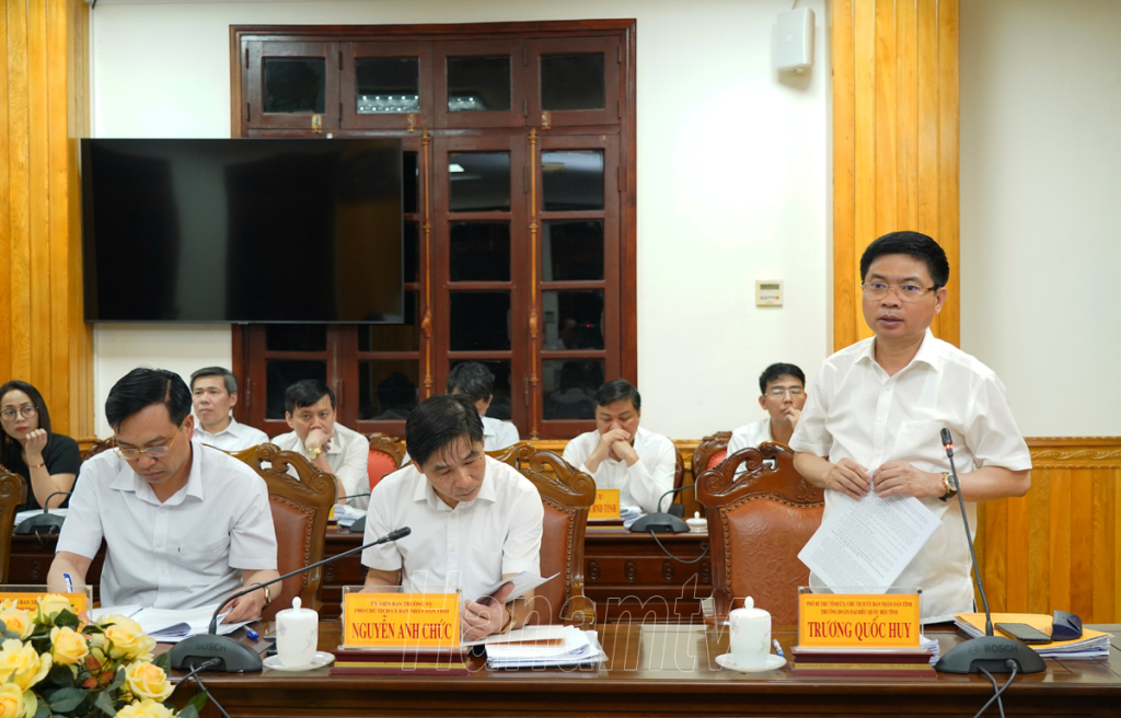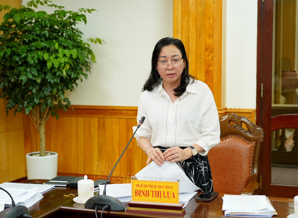 Đồng chí Phó Bí thư Thường trực Tỉnh ủy Đinh Thị Lụa phát biểu tại hội nghịĐồng chí Trương Quốc Huy, Phó Bí thư Tỉnh ủy, Chủ tịch UBND tỉnh, Trưởng Đoàn Đại biểu Quốc hội tỉnh phát biểu tại hội nghị.