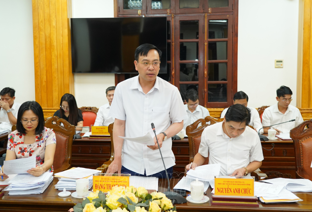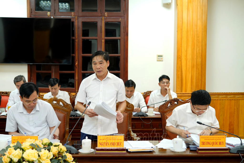 Đồng chí Đặng Thanh Sơn, Ủy viên BTV Tỉnh ủy, Phó Chủ tịch Thường trực HĐND tỉnh báo cáo dự kiến nội dung, chương trình Kỳ họp chuyên đề HĐND tỉnh năm 2024Đồng chí Nguyễn Anh Chức, Ủy viên BTV Tỉnh ủy, Phó Chủ tịch Thường trực UBND tỉnh báo cáo các nội dung xin ý kiến, xin chủ trương của BTV Tỉnh ủyĐồng chí Lê Hồng Quân, Ủy viên BTV Tỉnh ủy, Chủ nhiệm Ủy ban Kiểm tra Tỉnh ủy phát biểu tại hội nghị