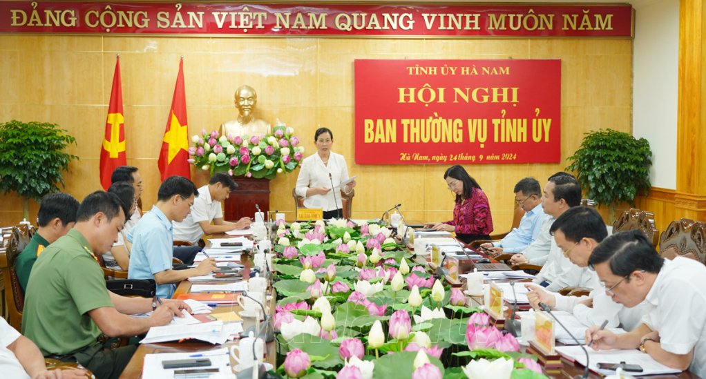 Sáng 24/9, Ban Thường vụ (BTV) Tỉnh ủy tiếp tục tổ chức hội nghị cho ý kiến về dự thảo Báo cáo kết quả công tác 9 tháng đầu năm; triển khai nhiệm vụ Quý IV/2024 của Tỉnh ủy; cho ý kiến, cho chủ trương các nội dung kinh tế - xã hội theo thẩm quyền. Đồng chí Lê Thị Thủy, Ủy viên Trung ương Đảng, Bí thư Tỉnh ủy, Chủ tịch HĐND tỉnh chủ trì hội nghị.
