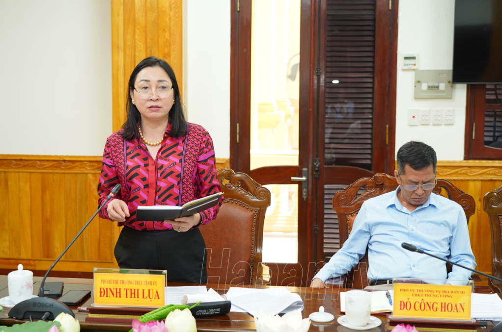Đồng chí Đinh Thị Lụa, Phó Bí thư Thường trực Tỉnh ủy phát biểu tại hội nghị