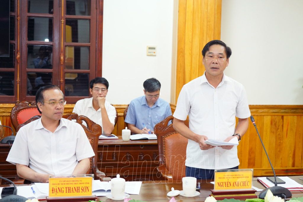 Đồng chí Đặng Thanh Sơn, Ủy viên BTV Tỉnh ủy, Phó Chủ tịch Thường trực HĐND tỉnh phát biểu tại hội nghịĐồng chí Nguyễn Anh Chức, Ủy viên BTV Tỉnh ủy, Phó Chủ tịch Thường trực UBND tỉnh phát biểu tại hội nghị
