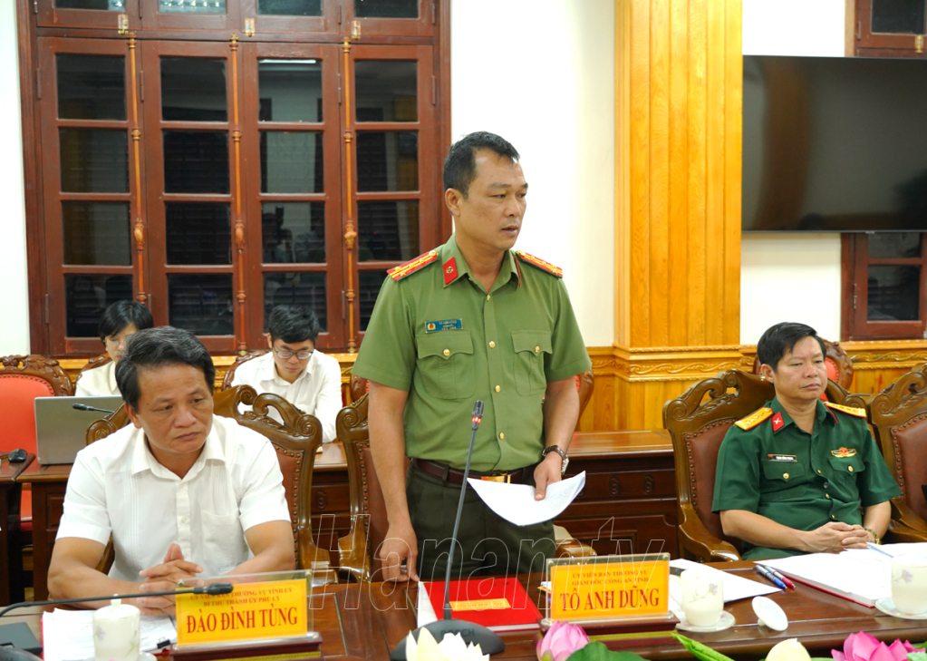 Đồng chí Nguyễn Minh Tiến, Ủy viên BTV Tỉnh ủy, Trưởng ban Dân vận Tỉnh ủy phát biểu tại hội nghịĐại tá Tô Anh Dũng, Ủy viên BTV Tỉnh ủy, Giám đốc Công an tỉnh phát biểu tại hội nghị