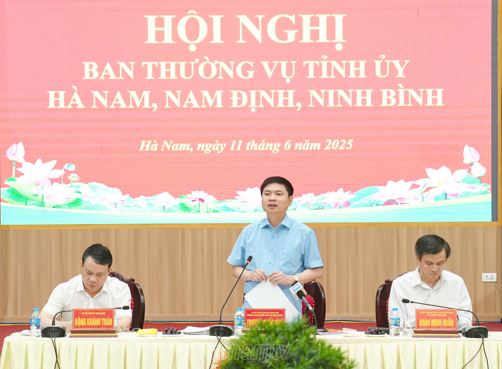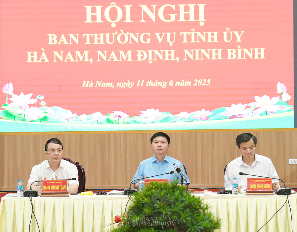 Phát biểu kết luận hội nghị, đồng chí Bí thư Tỉnh ủy Hà Nam Trương Quốc Huy nhấn mạnh: Theo dự kiến đến 30/6, 34 tỉnh, thành phố sau sáp nhập sẽ đồng loạt công bố bộ máy lãnh đạo mới của tỉnh, xã sau hợp nhất, sáp nhập. Do vậy, khối lượng công việc thời gian tới sẽ rất lớn; nhất là, trong bối cảnh cơ sở vật chất của thành phố Hoa Lư hiện chưa đáp ứng được yêu cầu hoạt động của các đơn vị sau sáp nhập. Vì vậy, BTV Tỉnh ủy ba tỉnh dự kiến sẽ bố trí một số trụ sở làm việc của các sở, ngành; các cơ quan báo chí tại 3 địa điểm ba tỉnh phù hợp với đặc thù công việc.