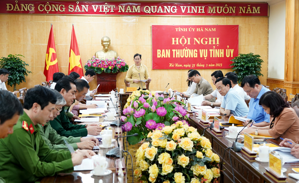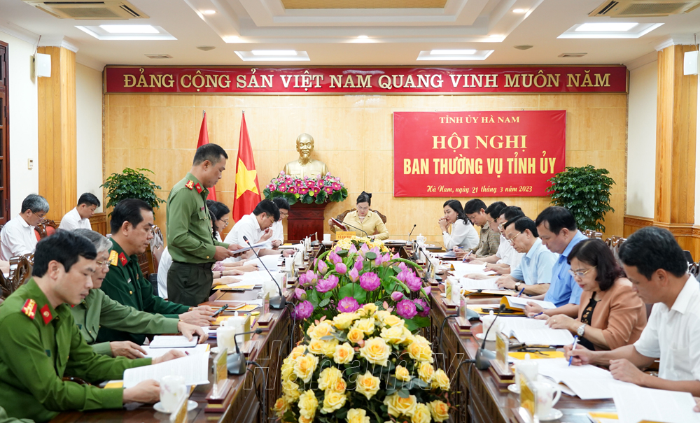 Chiều 21/3, Ban Thường vụ (BTV) Tỉnh ủy tổ chức hội nghị làm việc với BTV Đảng ủy Công an tỉnh về kết quả kiểm điểm giữa nhiệm kỳ thực hiện Nghị quyết Đại hội Đảng bộ tỉnh lần thứ XX, Nghị quyết Đại hội Đảng bộ Công an tỉnh lần thứ XV, nhiệm kỳ 2020-2025. Đồng chí Lê Thị Thủy, Ủy viên Trung ương Đảng, Bí thư Tỉnh ủy, Chủ tịch HĐND tỉnh chủ trì hội nghị.