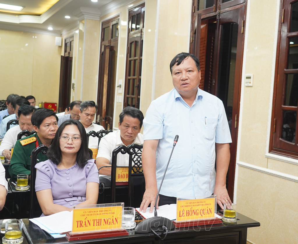 Đồng chí Lê Hồng Quân, Ủy viên BTV Tỉnh ủy, Chủ nhiệm Ủy ban Kiểm tra Tỉnh ủy phát biểu tại hội nghị.